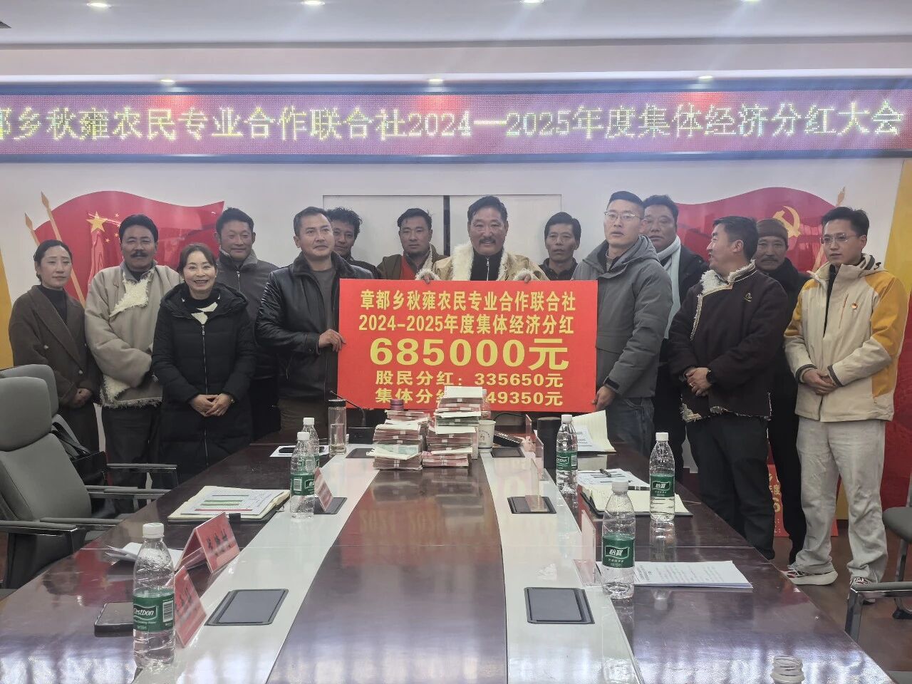 “真金白银到手,跟着合作社干,有盼头!”1月29日,白玉县章都乡便民服务中心里暖意融融,秋雍农民专业合作社正在举行年度分红大会。68.5万元现金整齐码放在桌上,陆续发到村民手中。一张张笑脸,一次次握手,满屋都是藏不住的喜悦。